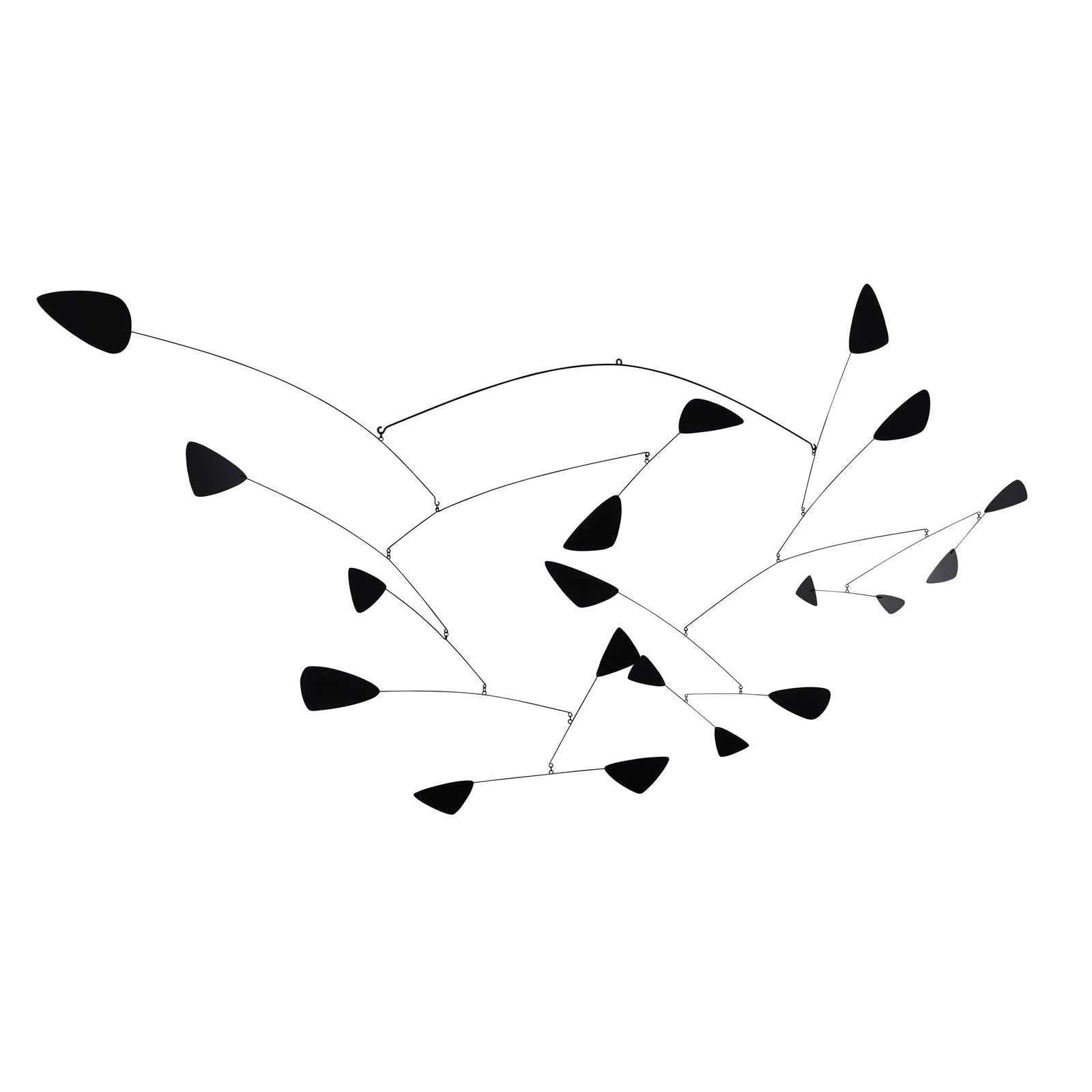 This suspension combines the elegant lines of organic design with a modern twist. The delicate, hand-bent steel rods hold high-quality aluminum blades that gracefully sway and flutter like leaves in the wind. It will arrive in a luxurious blue box with the VOLTA logo in gold leaf, making it the perfect gift for someone special. We provide you with everything you need to hang your mobile, including a two-meter spool of nylon thread, a hook, and a peg.